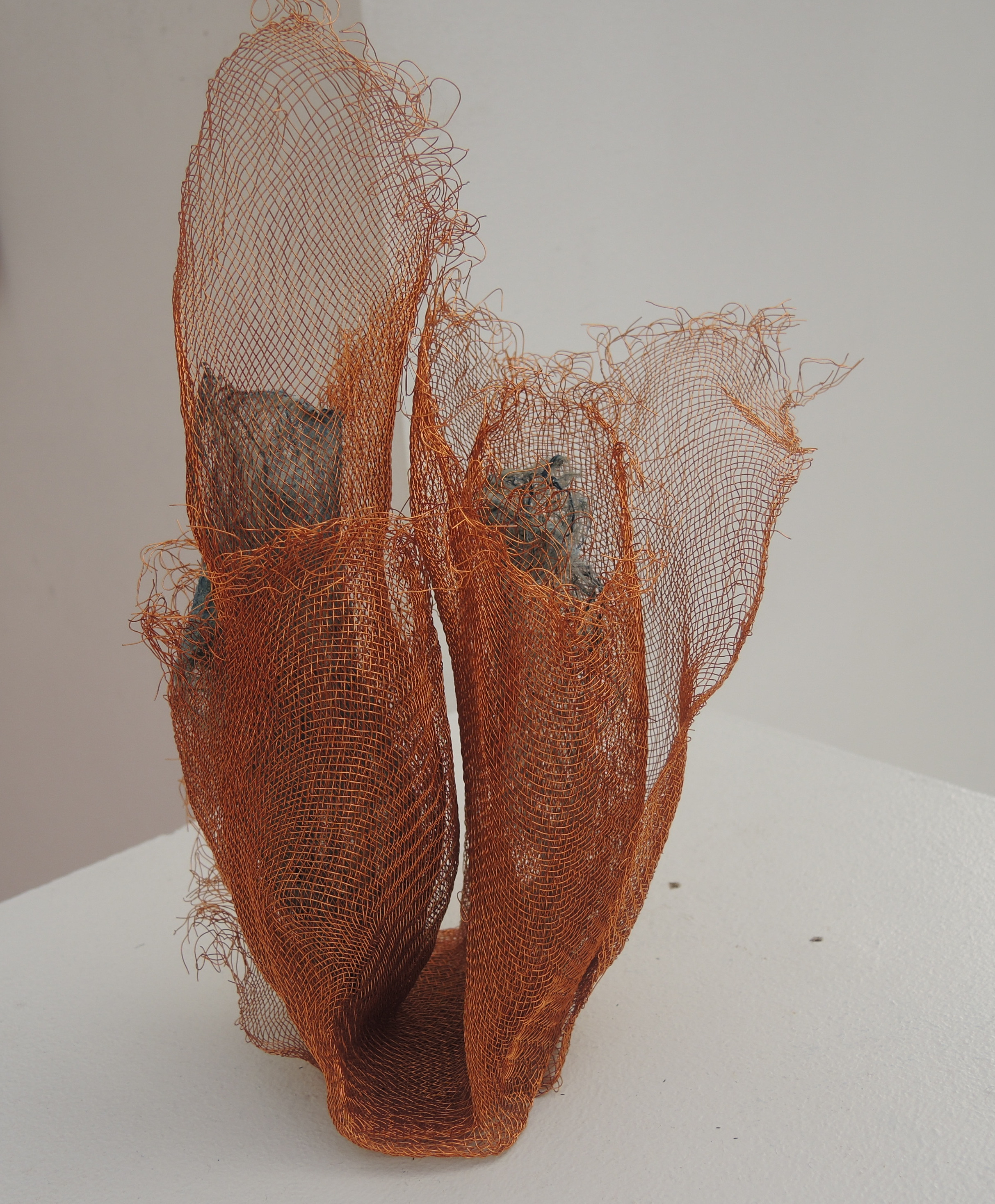 Textiel en papier zijn gedurende eeuwen als zeer kostbaar beschouwd; en bijna dertig jaar geleden sijpelden ze mijn leven binnen. Een oneindige wereld van traditie en natuurlijkheid, van variatie en tactiele sensaties, van kleurenweelde en stoffelijke soberheid ontplooide zich voor mij. Vanaf het eerste moment was er de herkenning en de onherroepelijke passie. DIT was wat ik wou, wat ik móest doen. Zowel bij 'textiel' als bij 'papier' is het de 'ziel' van de -natuurlijke- vezel die aangrijpt en zich in een oneindig aantal bindingen laat manipuleren. Van zodra er tijd vrij kwam, ging ik me meer en meer onderdompelen op twee niveau's. Naast gedreven creatie ondernam ik een intense zoektocht langs cursussen, workshops en studiereizen om me te specialiseren in onder meer driedimensionaal weven, plantaardig verven, shibori en papierscheppen. Ik volgde docenten uit België, Frankrijk, Nigeria, Mali, Senegal, de VS, Spanje. In Vietnam, Thailand, Laos, Cambodja, Indonesië en India ging ik me verdiepen in traditionele verf- en weeftechnieken. Beelden en creatie zijn een vorm van communicatie om door de muur van het individuele isolement te breken en contact te leggen met de toeschouwer. Vezels en kleuren helpen om beeld en gestalte te geven aan essentiële ervaringen; mijn werk is evenzeer een innerlijke zoektocht en een bezinning, een evenwichtsoefening over het leven, de dood als transformatie, over het innerlijke en het uiterlijke – de kern en de schil -, over hoe mensen met zichzelf en met anderen omgaan, vrouwelijke en mannelijke energie. En vooral een verzet tegen onze samenleving waar het aksent gelegd wordt op 'anders zijn' ipv verbondenheid, waar 'anders' als een bedreiging wordt ervaren, met alle gevolgen van dien... Tegen de stroom in, tegen alle geweld rondom mij, wil mijn werk zo fijn en broos mogelijk zijn, een subtiel en genuanceerd spel, het nodigt uit om gedetaillerd te bekijken. Het is een uitnodiging aan de toeschouwer om te durven geraakt te worden. Anderzijds is het werken met textiel en papier voor mij evengoed het bewaren en doorgeven van kennis; het bewaren van een stukje patrimonium. Immers, wat eeuwen geleden als kostbaarder dan goud werd beschouwd, wordt nog nauwelijks geapprecieerd, en de kennis van verschillende textiele technieken gaan langzamerhand verloren.